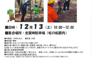 過密林を適切な密度に保つことで、クロマツの健全な育成を促します。 ■日時:12月13(土)10:00~12:00 ■集合場所: [...]