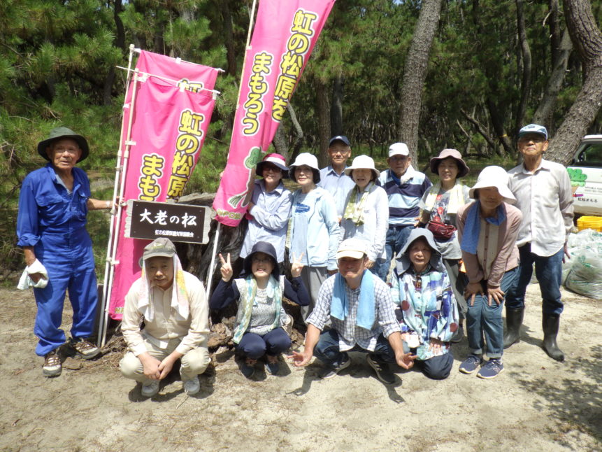 皆さんの丁寧な作業のおかげで見違えるほどきれいになりました。虹の松原がより一層美しく