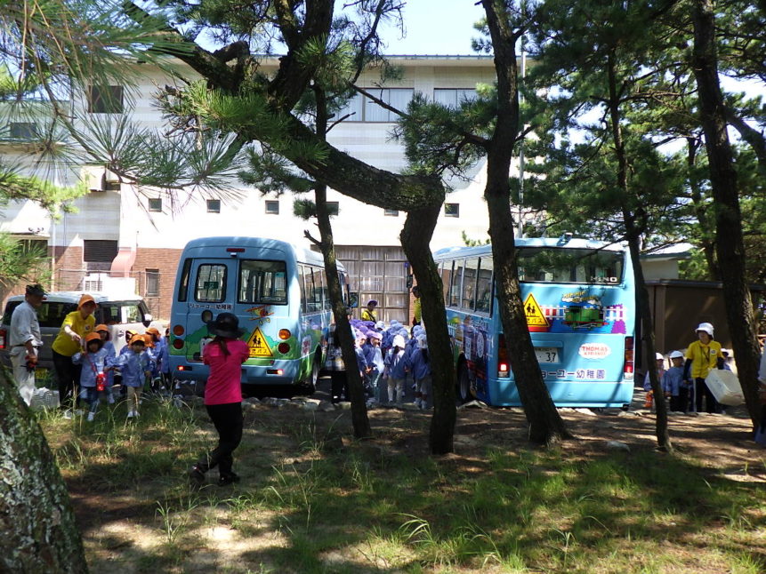 幼稚園のバスに乗って虹の松原にやってきてくれました。