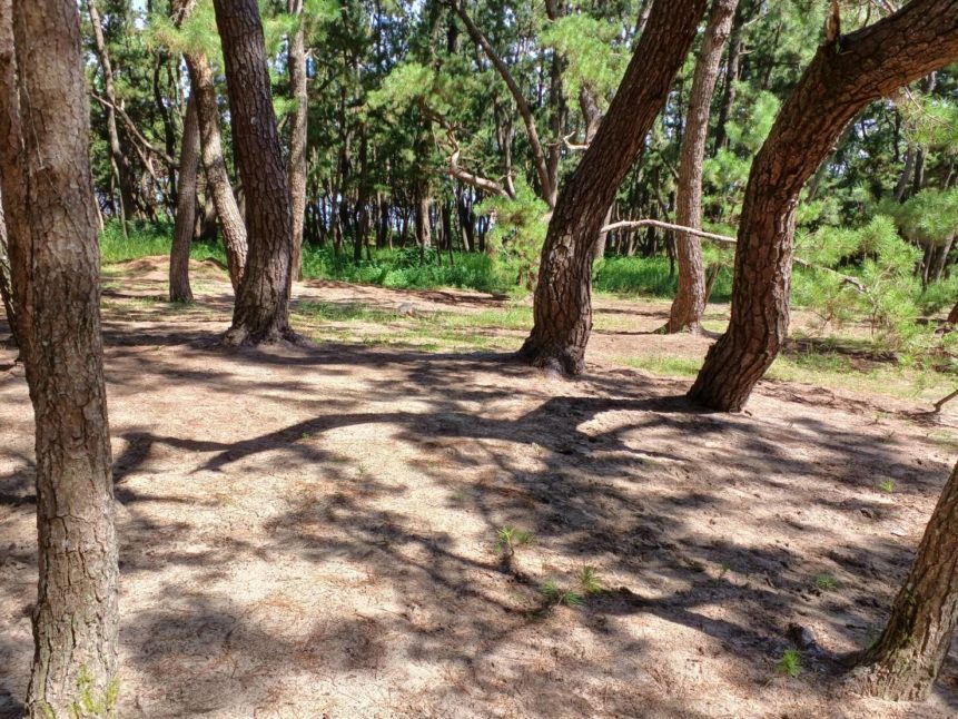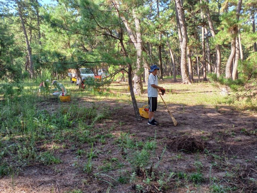 今日もバスターズのみなさんは、黙々と活動されてあっという間に広い範囲の場所がきれいになりました。根っこからとることでこの後も草が生えてもすぐに抜くことができます。バスターズが活動したところは、松原を散策してみるとすぐにわかります。虹の松原の景観を保つために大きな役割を果たしていると思います。