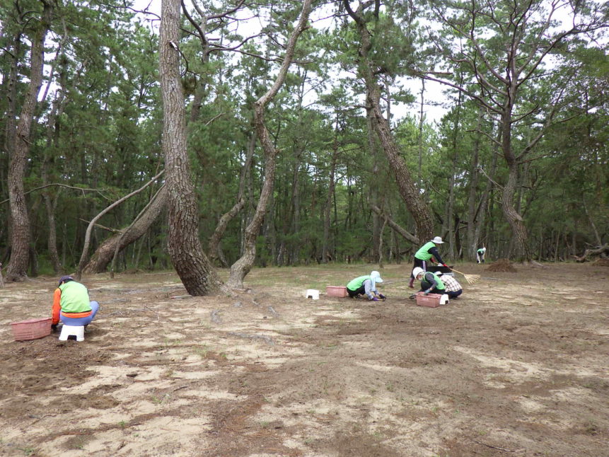 松原の隅々まで丁寧に草を抜いていただき、短い時間で見違えるほどスッキリ。青々とした松林がよみがえり、白砂青松に近づきました。訪れる人を笑顔で迎えてくれそうです。