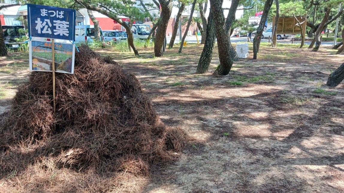 小さなホウキで一生懸命集めた松葉は、あっという間に大きな山に!みんな夢中になっていました。