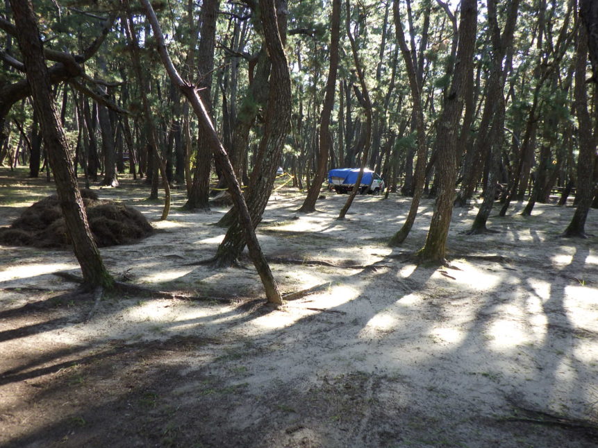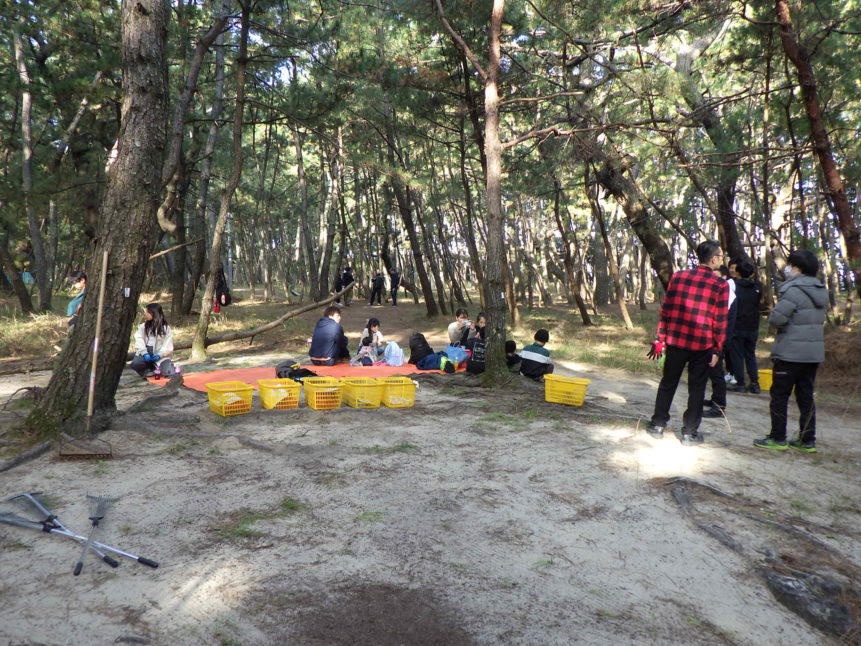 約2時間の作業でしたが、休憩時間にはお茶やお菓子を囲んで和やかなひとときを過ごし、笑い声が松原に響いていました。