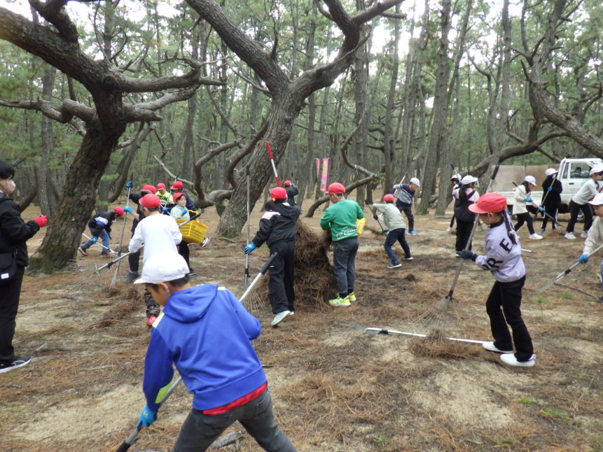 「大きな松葉の山をつくるぞ!」と全員がやる気満々。
