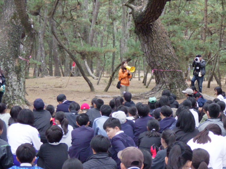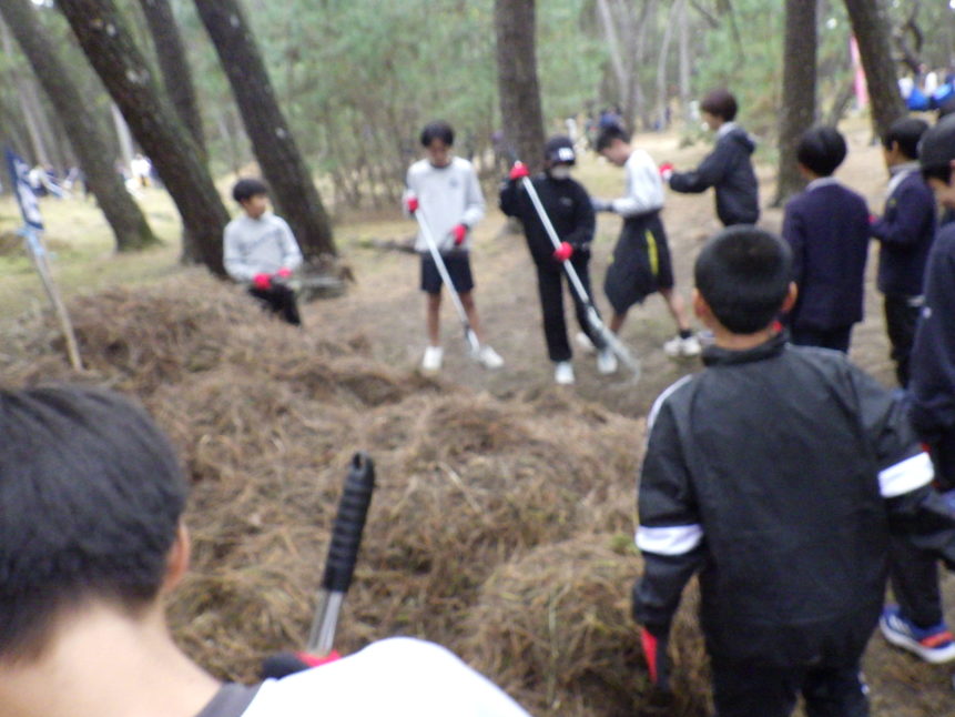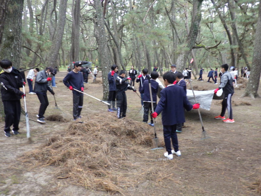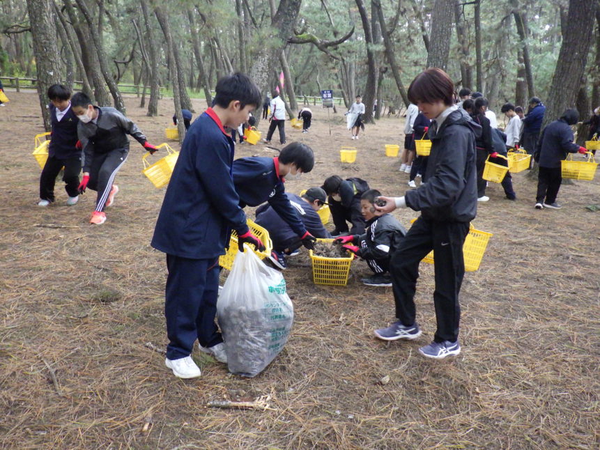 11月27日(木)、浜玉中学校(1年生)、浜崎小学校(6年生)、玉島小学校(6年生)、平原小学校(6年生)のみなさん、あわせて約280人が虹の松原の保全活動に参加してくれました✨