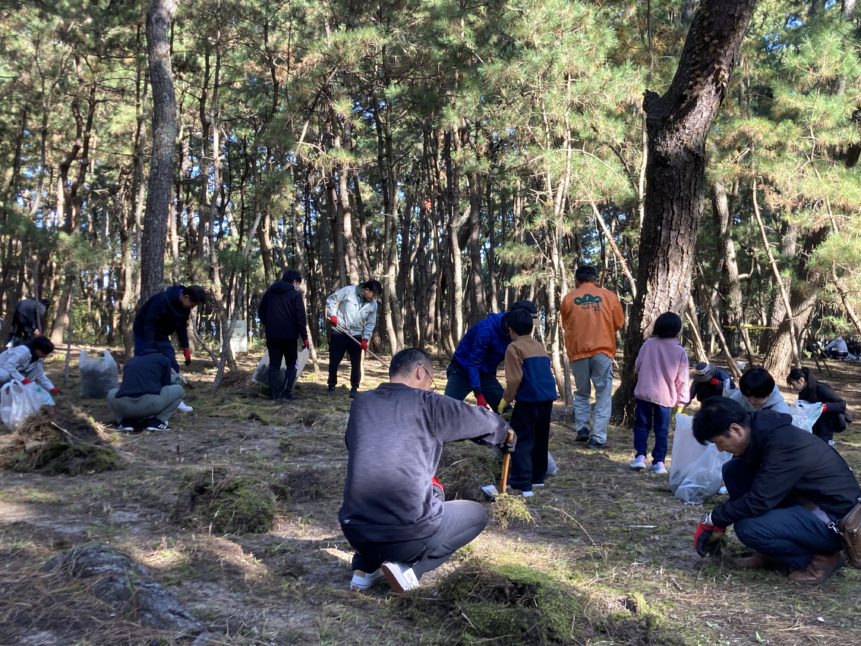 今回の場所は松葉が厚く積もり、さらにコケも広がっていて大変な作業でしたが、若い方々が率先して動いてくださり、とても頼もしく感じました✨。ご家族で参加された方も多く、子どもたちが一生懸命取り組む姿も印象的で、会場全体が温かい空気に包まれていました。