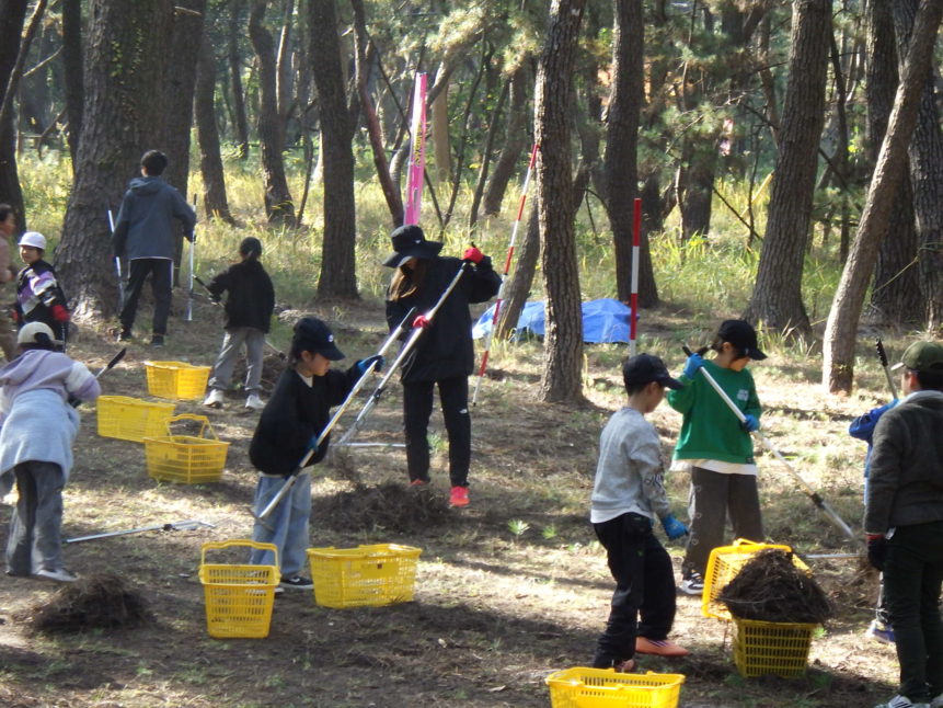 🔥 さらに大盛り上がりだったのは「松葉タワー選手権」!力を合わせて松葉を積み上げ、ドキドキしながら結果を待つ子どもたちの真剣な表情が印象的でした。結果発表では大きな歓声、負けたチームはちょっぴりしょんぼり…でも最後はみんなで松葉かき。「トラックいっぱいに松葉の山をつくるぞ!」と声を合わせ、全員がやる気満々。