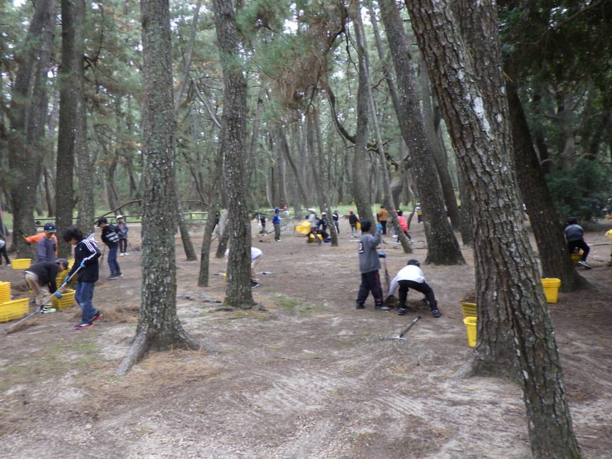 最後は「トラックを山盛りいっぱいにしよう!」を合言葉に松葉かきを行い、白砂青松を目指して元気いっぱい活動しました🌞🌲