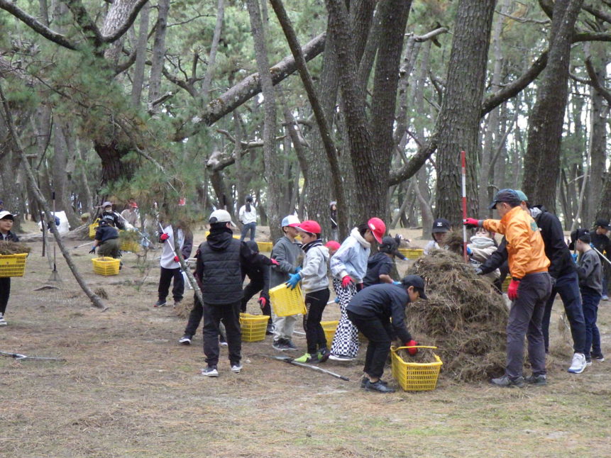 最後は「トラックを山盛りいっぱいにしよう!」を合言葉に松葉かきを行い、白砂青松を目指して元気いっぱい活動しました🌞🌲