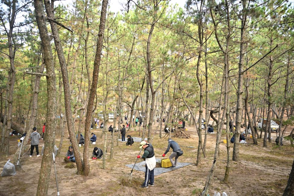 今回は、コケが多く生えている場所での「コケはぎ」を中心に作業を行いました。参加者全員で力を合わせ、「白砂青松」の美しい虹の松原を取り戻すべく取り組んだ結果、活動終了時には本来の白い砂地が姿を現しました。これはひとえに、皆さまの熱意とご協力の賜物であると深く実感しております。重ねて御礼申し上げます。
