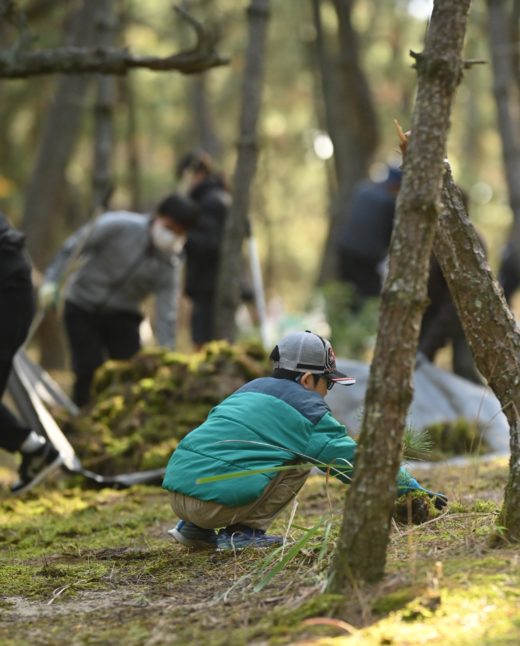 今回は、コケが多く生えている場所での「コケはぎ」を中心に作業を行いました。参加者全員で力を合わせ、「白砂青松」の美しい虹の松原を取り戻すべく取り組んだ結果、活動終了時には本来の白い砂地が姿を現しました。これはひとえに、皆さまの熱意とご協力の賜物であると深く実感しております。重ねて御礼申し上げます。