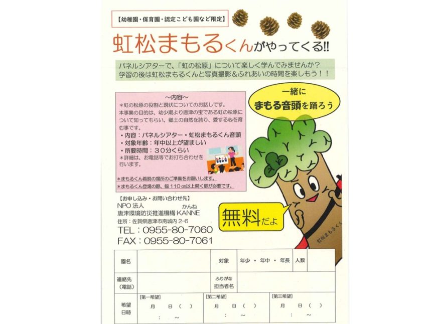 私たちは、幼いころから虹の松原について知ってもらいたいという思いのもと、園児向けの虹の松原出前学習を行っています。