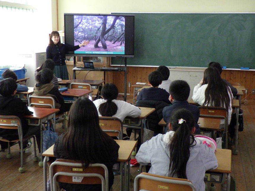 学校での出前授業(45分)と、虹の松原での自然環境体験学習(約2時間)で構成されています。