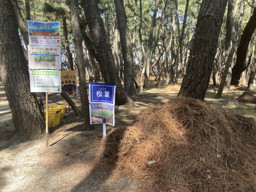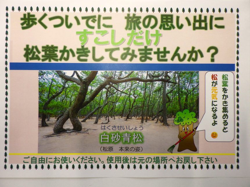 ちょっと虹の松原の散歩に来たついでに、「気軽に松葉かきをしてみませんか。