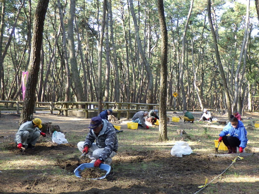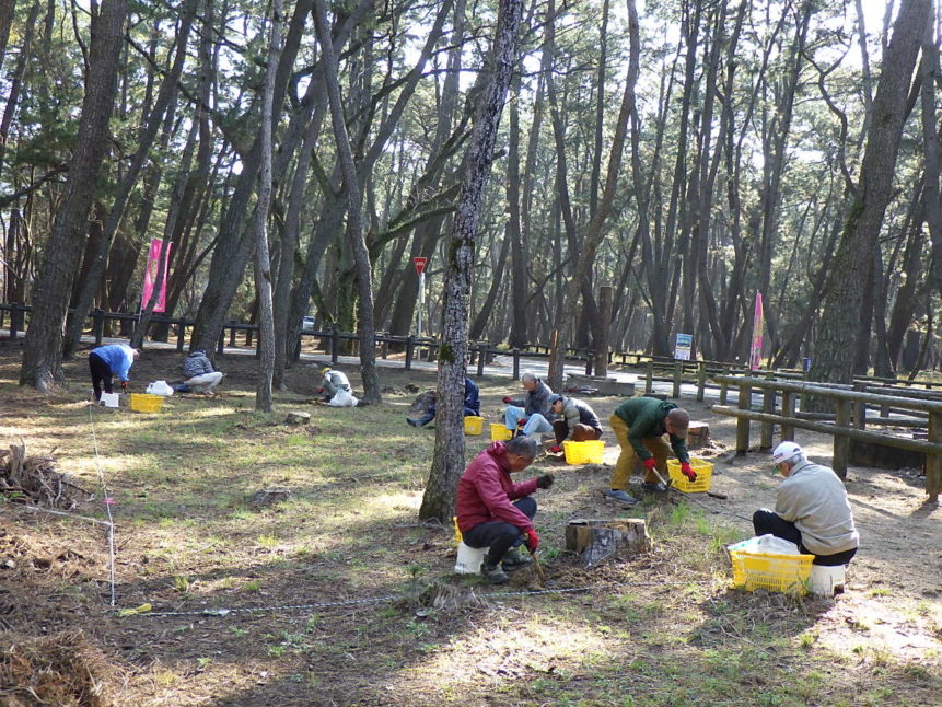 毎週火曜の朝、虹の松原で増えすぎた植物を根から丁寧に取り除き、未来の松原を守る活動です🌱