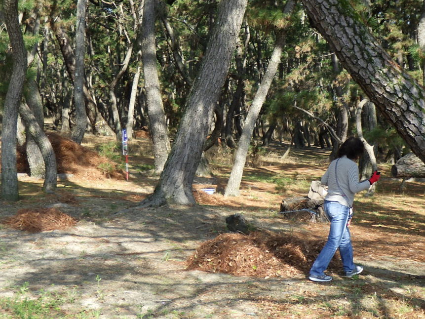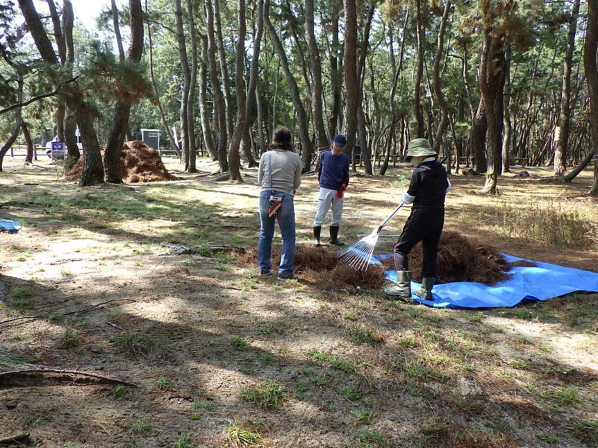 3人という少人数ながら、あっという間に広い範囲の松葉かきを終え、