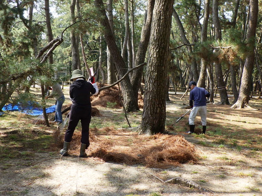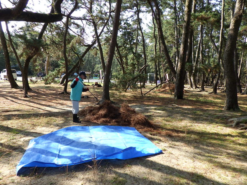 3人という少人数ながら、あっという間に広い範囲の松葉かきを終え、