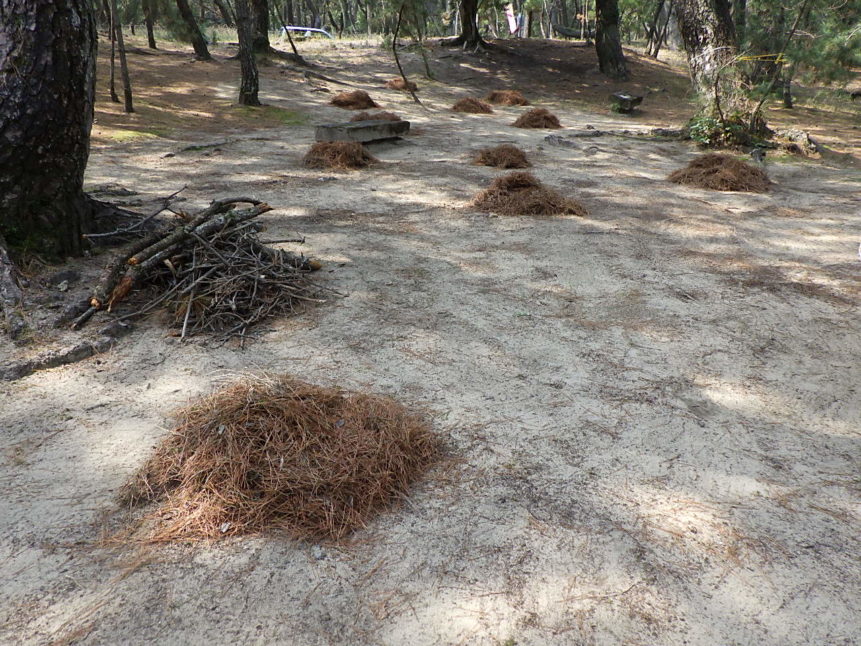 いつものユニフォームに身を包み、やる気いっぱいに松ぼっくり拾い、落ち枝拾い、そして松葉かきを行ってくださいました。