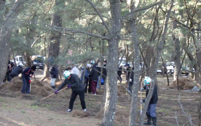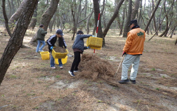 しかし、1960年代ごろから人々の生活様式の変化により、松葉の採取が行われなくなり、林地が富栄養化したため広葉樹が繁茂していきました。また、松くい虫による松が枯れる被害も年々深刻化している状態でした。そこで多くの課題を解決し、白砂青松の姿を取り戻すべく、ボランティアによる松葉かきや除草作業等が2009年度からはじまりました。
