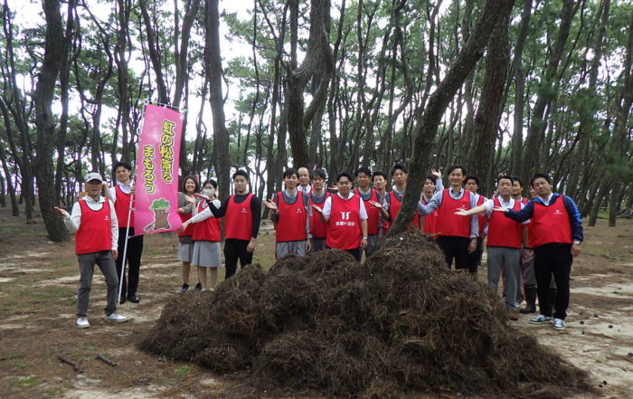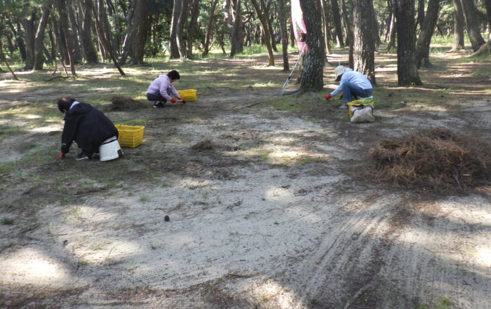 しかし、1960年代ごろから人々の生活様式の変化により、松葉の採取が行われなくなり、林地が富栄養化したため広葉樹が繁茂していきました。また、松くい虫による松が枯れる被害も年々深刻化している状態でした。そこで多くの課題を解決し、白砂青松の姿を取り戻すべく、ボランティアによる松葉かきや除草作業等が2009年度からはじまりました。