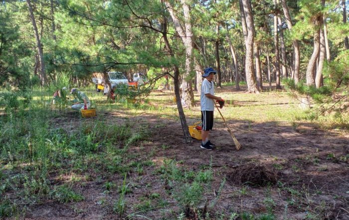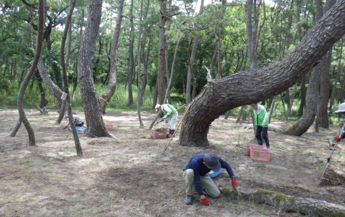 しかし、1960年代ごろから人々の生活様式の変化により、松葉の採取が行われなくなり、林地が富栄養化したため広葉樹が繁茂していきました。また、松くい虫による松が枯れる被害も年々深刻化している状態でした。そこで多くの課題を解決し、白砂青松の姿を取り戻すべく、ボランティアによる松葉かきや除草作業等が2009年度からはじまりました。