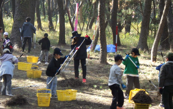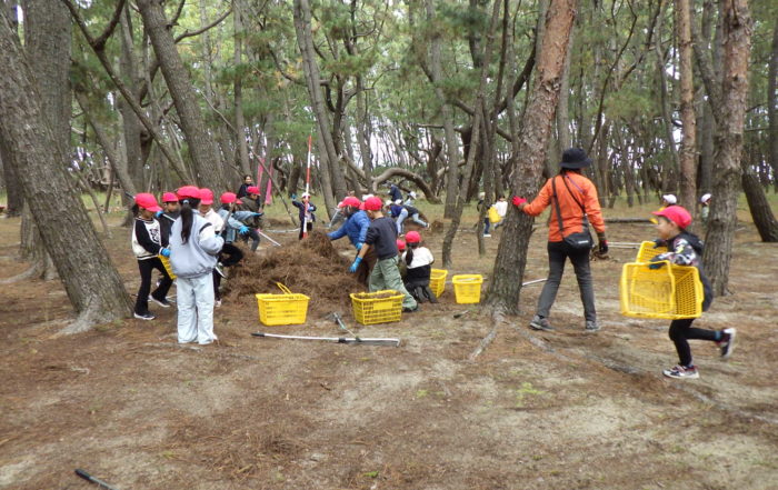 しかし、1960年代ごろから人々の生活様式の変化により、松葉の採取が行われなくなり、林地が富栄養化したため広葉樹が繁茂していきました。また、松くい虫による松が枯れる被害も年々深刻化している状態でした。そこで多くの課題を解決し、白砂青松の姿を取り戻すべく、ボランティアによる松葉かきや除草作業等が2009年度からはじまりました。